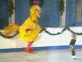 The Special begins with the cast of Sesame Street at an ice ring, alla “Ice Follies” or “Sesame Street on Ice”; where Big Bird, Oscar, Cookie Monster, Bert & Ernie and The Count are joined by children and the other Sesame Street adults, playing around as Christmas classics like Jose Feliciano’s version of “Feliz Navidad” are played in the background over this opening sequence.
