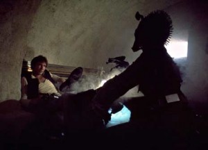 I used to work in television. One day I was asked to find a nifty fact to go along with how much it costs to manufacture the space shuttle. So I thought I’d find out how much it cost to build the full-sized Millennium Falcon for Star Wars! You know, the one you see Harrison Ford crawling all over in The Empire Strikes Back? So I used some contacts and got a hold of the Lucasfilm PR department. From there I got transferred to their archivist where I asked, point blank, how much it cost to build it. I was told, categorically, that there was never a full-sized Falcon, and that they only used miniatures.