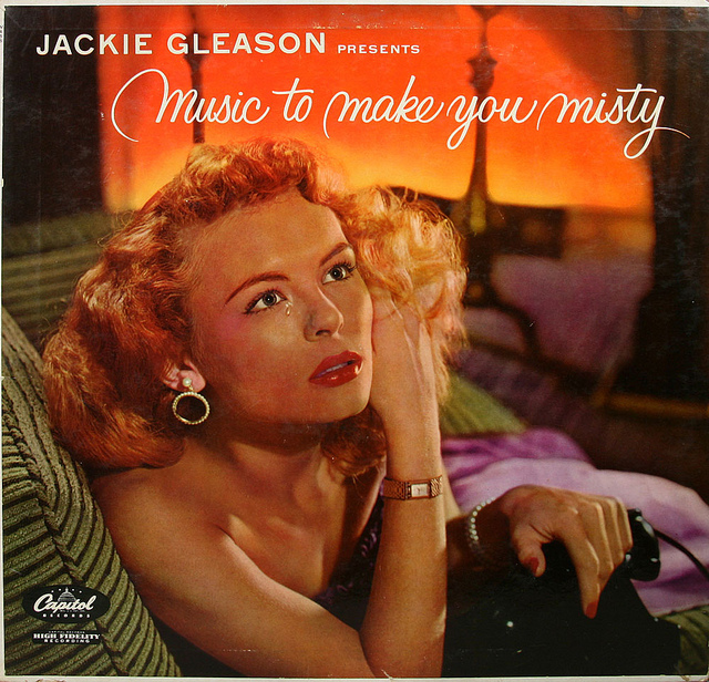 He had such fun doing this, Gleason had an idea of expanding them into an entire album. His idea for this was quite funny: Gleason recalled watching love scenes in Errol Flynn films, where this very passionate “love” music would set the mood, and he watched as the romance was “magnified a thousand percent” by this background music. So he figured, if Flynn needed it, a guy from Brooklyn must be desperate!