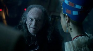 Meanwhile, as his turns as Harry Potter‘s Argus Filch and Game of Thrones‘ Lord Walder Frey have proven, when you want small, mean, nasty, and rotten-to-the-core, you call David Bradley. His venom-spitting, tiny-souled Solomon was an amazingly complete and satisfying antagonist for the Doctor given that he only turned up about halfway through the episode. And while, yes, the practical upshot of his little scheme was the possible destruction of Earth, the fact that it was caused not by a megalomaniacal desire for universal domination or a murderous long-standing hatred for the Doctor but by simple, uncaring, petty greed was refreshing.