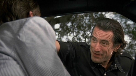 This brings us to a major theme in the film which Scorsese levels on the audience: the issue of class. It is inherit in the film that Bowden’s character 14 years prior and once Cady is released from prison always felt that he was above or more plainly, not on the same level as Cady in terms of social class. This is a point that is danced around in almost every conversation Sam and Max have, from their first encounter, to the film’s climax on the banks of a river during a hurricane. “You think you’re better than me?” Surprisingly though, Max does seem to succeed with his goal and at the end of the movie Cady in fact lowers Bowden down to the primal, animalist level he resides in. So in fact, DeNiro’s character does succeed in getting what he wants, and essentially wins, and in the denouncement, Max being satisfied is completely neutral about his eventual death.