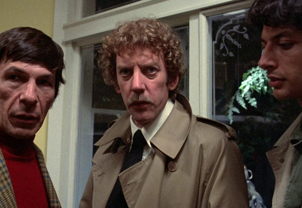 The supporting cast is absolutely brilliant, with a great job by Goldblum in a very early role, and a very notable role for Leonard Nimoy as the famous doctor-friend who Sutherland brings in to help ease the growing paranoia he is seeing in his friends. SPOILER ALERT! (It is interesting to note at the time of the film’s release, Nimoy was at the point of his career where he wanted anything but a Spock-ish role, and what does he turn to play? But a doctor who becomes an emotionless, loveless alien… Huh.)