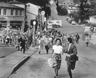 Another brilliant method the director uses is for example a scene where the camera follows around Sutherland in Chinatown as he voice-overs several calls to the Health Department airing his concerns about what is happening, and getting the runaround from the operators and receptionists. The visuals you see are people watching Sutherland walk about being photographed, and the pedestrians unintentionally start staring and pointing, and this is interjected with cut-aways of shots of faces on a bus or walking by (obviously completely unaware that a movie is being made), who are staring blankly at the camera, trying to see what is happening, but in doing this honest reaction, they add a VERY CREEPY element to the story, almost as if they too have been taken over and aware of what is happening, and that is the reason they are staring back at us and the Donald Sutherland character.