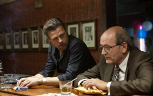 The plot goes like this: Two lowlife, crack-addict, brain-dead criminals (Scoot McNairy & Ben Mendelsohn) are recruited to knock off Markie Trattman’s (Ray Liotta) high-stakes underground casino. A porcine thug who has knocked off one of his own games in the past and got away with it, Markie knows he is dancing with death, and the mob brings crime enforcer Jackie Cogan (Brad Pitt) to town to re-establish order in the mob underworld.
