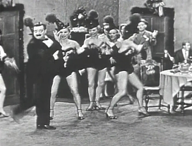 First the Poor Soul, the simple-minded character played by Gleason, comes in to deliver a keg of beer. After some comedy, he leaves and then Trixie’s old Vaudeville friend, singer Frances Langford comes in and sings two songs for the small group (funny to note that she sings to the studio audience and cameras oddly breaking the fourth wall- making her sing with her back to the group she is supposedly there to sing to, essentially making her sing to the small apartment’s far wall). Carney then gets to show-off some of his dance moves as he leads the singer as she croons “I Love Paris.”