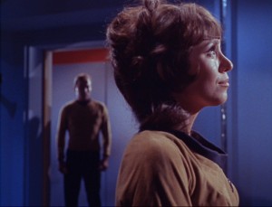 balanceofterror318How about one more, while I’m showing off?  At the end of the episode “Balance of Terror”, Kirk visits a young officer in the ship’s chapel.  She has just lost her fiance in battle.  In fact, their wedding at the beginning of the episode was interrupted by the crisis at hand.  Kirk has gone to try to console her.  The music for this scene was cobbled together from bits from “The Cage”.  Here I present to you the music from the scene in “Balance of Terror”: