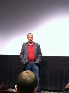 One of the hardest things about this picture, when we wrote it was, we could not, we truly, truly tried, for weeks, but we could not find the ending. We had dialogues, Chris D’Antoni and I would take walks and say how am I gonna end this picture? What am I gonna say? What am I gonna have Brad Davis say? And slowly but surely it dawned on us that he didn’t need to say anything. The ending is the ending without dialogue. The other thing I would like to make mention before I take questions here is, Brad Davis was very sick. We didn’t know it. He was extremely sick. He would pass on not too long after this picture. Um, he had AIDS. I could of never gotten insurance on him had I known at the start of the picture, and one of the things that began to happen to us because of the boxing sequences, especially because in the ring we had to use theatrical lights, and with theatrical lights, there’s no mercy there, and we had to raise the stage to get the lighting just right. And all of the fighters you saw were professional fighters; pros, semi-pros, some of them were amateurs that were going to turn pro, and we were always worried that one of them were going to land that blow, and that would end our picture. When we started to go to dailies, Jimmy Lemmo and myself and the rest of the crew, by the time we went to the 5th night of the dailies, we began to see that Brad Davis was losing weight- losing weight right in front of our eyes. We actually put up the first daily- a daily is what we shot on Monday, we’d look at on Tuesday, we put up what we did on Monday and put the last daily (Friday) and it was noticeable. So we had to stop the fighting, and that threw the picture right off the way the picture was planned to go.