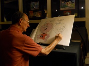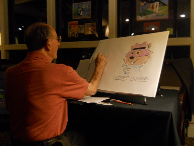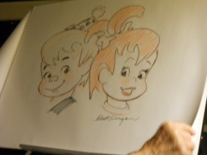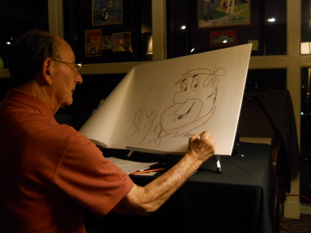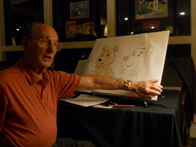 I was lucky enough to catch up with Mr. Singer while I was in Los Angeles in early April and had the privilege to be invited a very intimate gathering of no more than 20 people, where a colloquium was held in honor of Mr. Singer and armed with pad and pencil, he drew some of Hanna Barbara’s most famous characters and showed original concept artwork versus the finished charcter design.