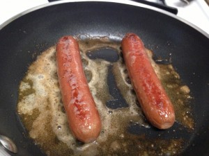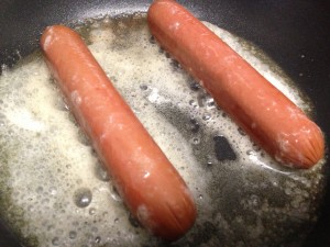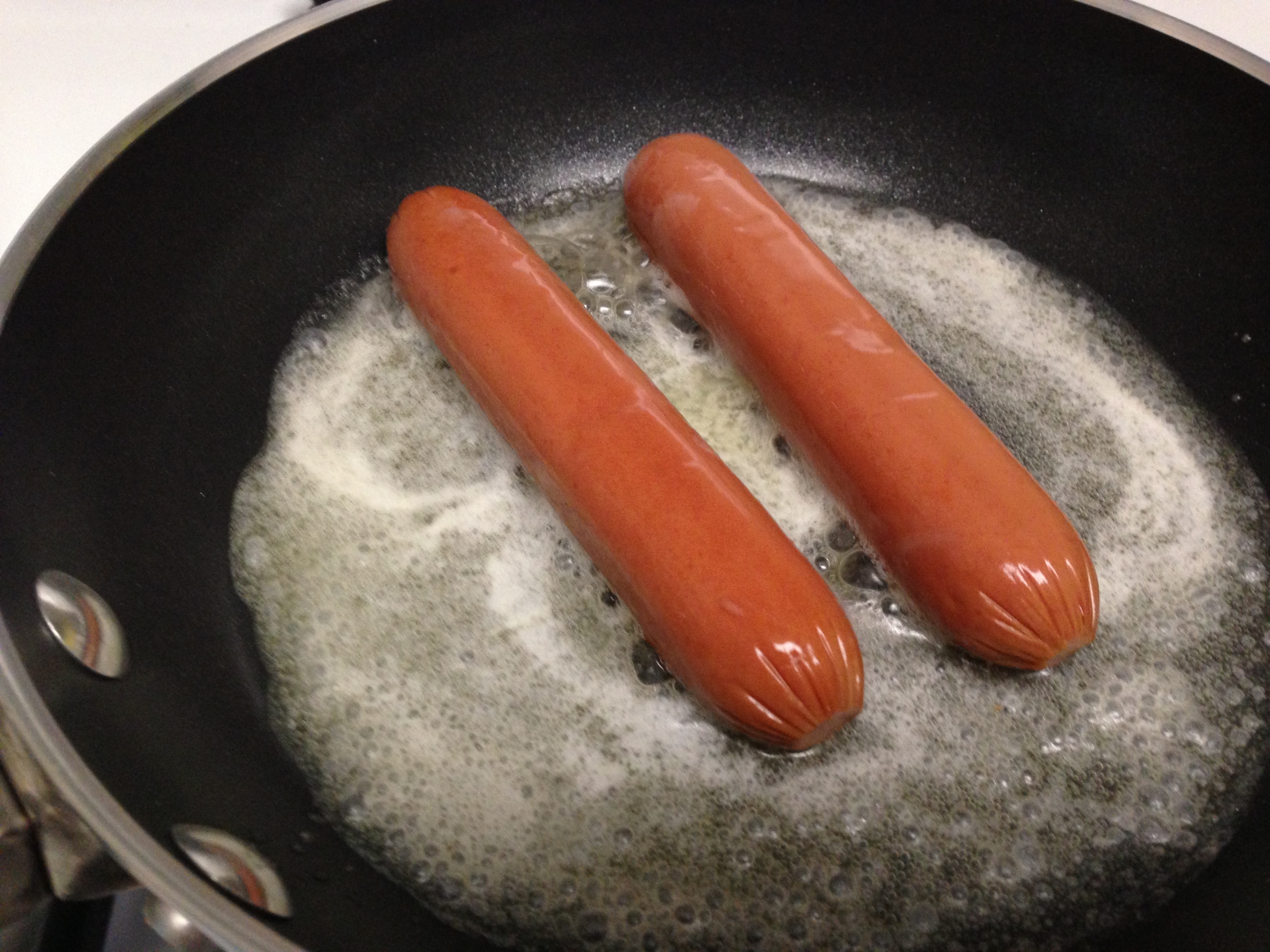 The first thing you notice about the dogs, even before they hit the pan, is that they are of a darker color than your standard dogs. This could be a little off-putting, since a hot dog that has been in the fridge too long will kind of have the same color to it.